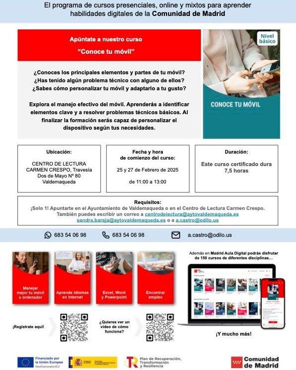 - CURSO "CONOCE TU MÓVIL": 25 y 27 de febrero de 11 a 13 h.